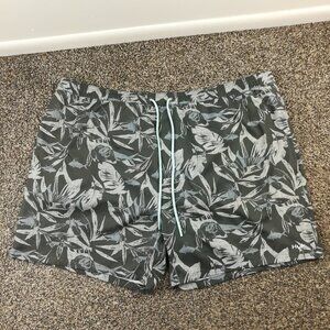 Huk Swim Trunks Floral Fish Print 5.5" Lined Board Shorts Gray Blue Mens 3XL