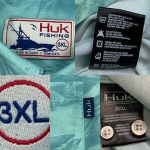 Huk Tuna Fishing Button Down Shirt 3XL XXXL Turquoise Short Sleeve Performance