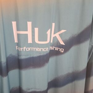 Stylish long sleeve shirt with a blue and orange gradient. Features Huk logo on chest and sleeve.
