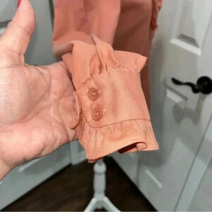 Style:Vintage ruffle front, puff shoulder, gathered sleeve, blouse button front