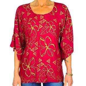 Hula Bay Rayon Blouse Size Small 6 Red Purple Floral Quarter Sleeve Scoop Neck