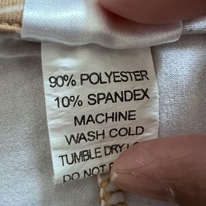 Style: Womens short-sleeve shirt/blouse with an allover tropical leaf print in tan and white.