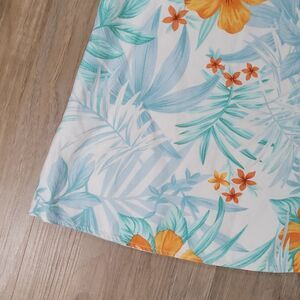 🔺️Hula Doll White & Teal Floral Print Silk Skirt Large
