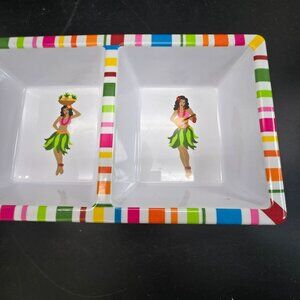 Hula Girl Divided Serving Tray Colorful Striped Border Heavy Melamine DH1367