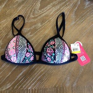Hula Honey Juniors Floral Mixed Print Push Up Bikini Swim Top Size Medium