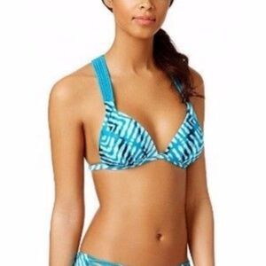 Hula Honey push-up bikini Top, racer strappy back, ties at back, Blue, M, NWT