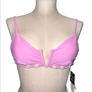 Hula Honey Juniors Shell-Trim Bikini Top Lilac Chiffon Small NWT