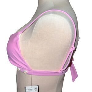 Lined Removable cups Tie closure at back; adjustable straps V-notched neckline; shell trim at band