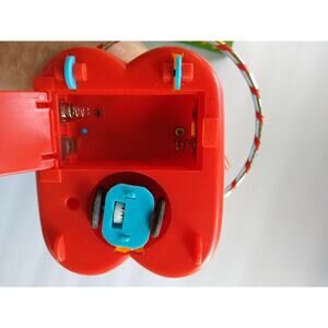 New old stock circa 1987 boxed battery operated hula bear toy. Tested and works great. Made of hard plastic with decals applied. Plastic hula has silver tape that is slightly lifted from age. Some light creases to box. Great storage find in amazing condition. Size of toy is 6" x 4.5". Box is 7.75" x 4.5".