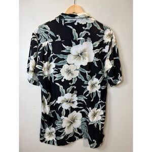 Hula Hula Hawaii Men's Size Medium Black Floral Button Up Shirt Short Sleeve