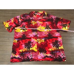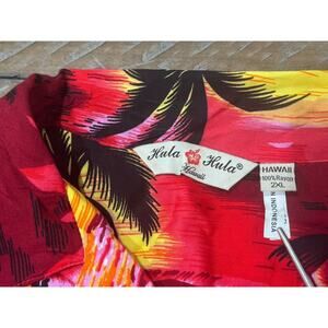 Hula Hula Hawaiian Shirt Fuchsia Black/Red/Yellow Palm Trees Tropical Rayon- 2XL