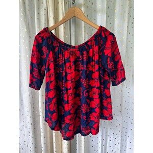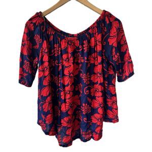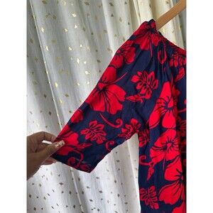 Hula Mama Maternity Hawaiian Aloha Hibiscus Tropical Floral Flowy Blouse S