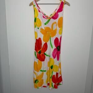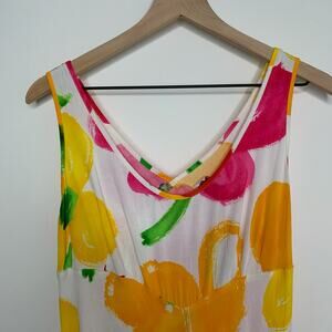 Hula Moon by Jams World White Multicolor Floral Sleeveless Midi Dress Medium USA