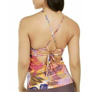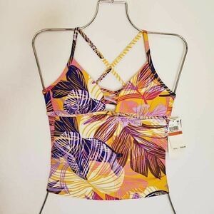 Hula Honey Womens Tankini Top Swimsuit Orange Floral Criss Cross Back XS New
