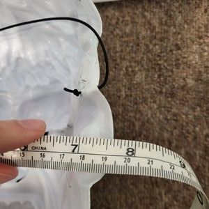 It has a few small, minor spits in the plastic on the left side of the chin. I would guess this would be used as a display piece and not something for Halloween, so the small splits are not noticeable. There are a few black smudge markings inside of the mask. Please see all the photos.