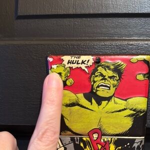 Vibrant metal sign featuring Hulk in a comic book print