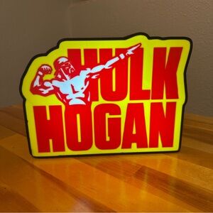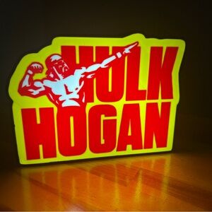 Bright LED sign featuring Hulk Hogan. Bold red and yellow design.