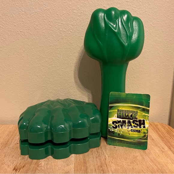 This was PART of a Hulk board game back in 2008, when that movie came out with Edward Norton. You put Play-Doh or clay and make military vehicles and smash it with the stick-fist.