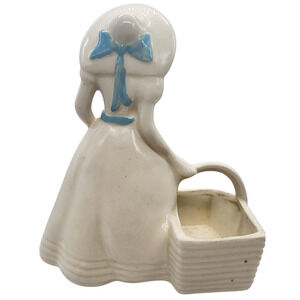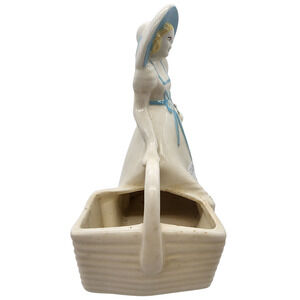 Hull Art USA #954 Lady W/Planter Figurine Blue Hat & Ribbon MCM
