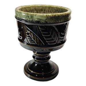 Hull Green Leaf Pattern Pedestal Planter Vase Made in the USA Vintage F63