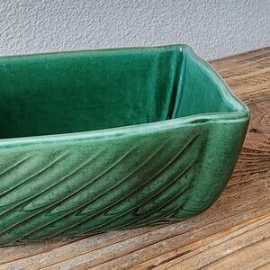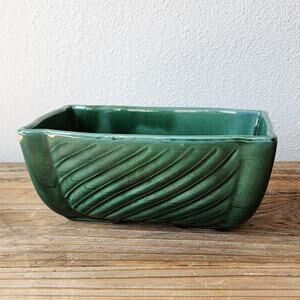 Hull Planter Vintage Art Pottery F12 Green Dish MCM Rectangle Ribbed Footed USA