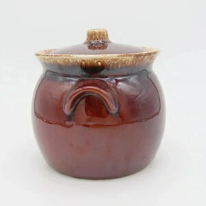 Hull Pottery Bean Pot with Lid Vintage Oven Proof USA Brown Drip Pot