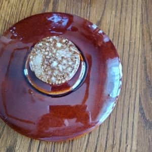 Very good condition vintage bean pot. Made in Ohio by Hull Pottery. Small chips on edge of lid and one on pot handle, normal for age and not highly visible.