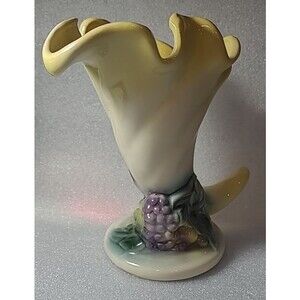 Hull Pottery Fiesta Cornucopia Vase 8.25'' Yellow Grapes #49 Vintage