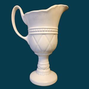 Hull Pottery Matte White Pitcher Diamond Footed Pedestal Vase F32 USA 10.5"Tall