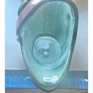 This vintage ceramic basket showcases an elegant turquoise and pink palette with a unique handcrafted design.