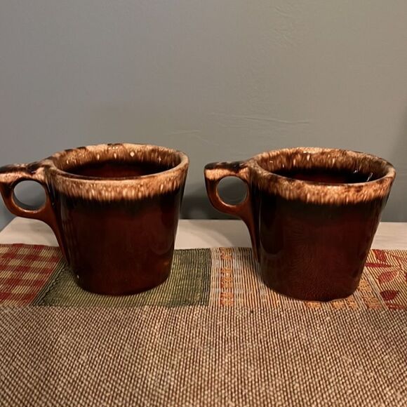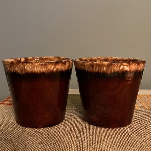 Hull Vintage Pottery Brown Drip Coffee Mugs with O ring handles Made in USA