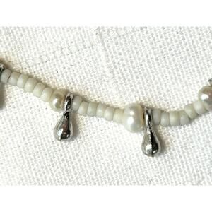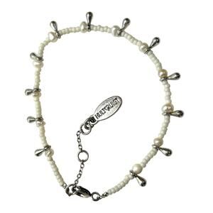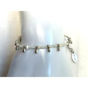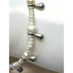Add a touch of Scandanavian elegance to your jewelry collection with this authentic Hultquist Copenhagen bracelet. Featuring delicate off-white seed beads, freshwater pearl accents and silverplated teardrop dangle charms, this piece embodies the brand's signature boho-chic and minimalist style.
