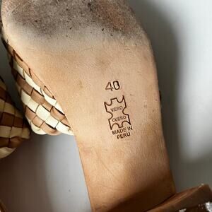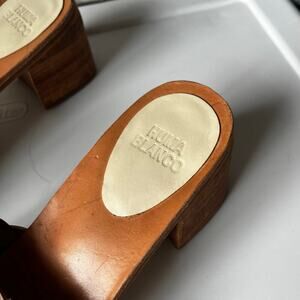 Huma Blanco Gia Leather Woven Wooden Sandal Tan Cream Size 40/ 10