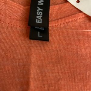 50% polyester 38%cotton 12%rayon Color is an orange coral