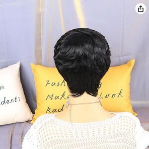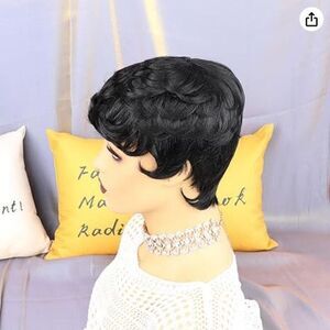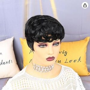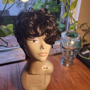 Human Hair Short Black Pixie Wig 3in | Materials: human hair | Length: 3in | Clasp: wig cap classic | Signed? no | Excellent vintage condition