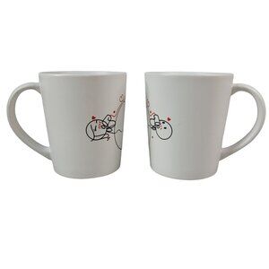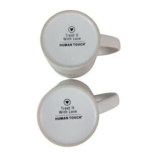 Human Touch Treat It With Love White Mug Globe Stick People Can And String Connected Talking 2 Mug Set. Matte finish. Excellent pre-owned condition with no stains, chips or cracks.