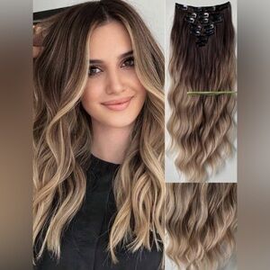 Upgrade your hairstyle instantly with these long wavy ombre clip-in hair extensions, crafted from premium human hair blend for a soft, silky, and natural finish. Featuring a dark brown to blonde balayage blend, these natural-looking clip-in extensions add instant volume, length, and dimension to your look. The easy-to-use clips provide a secure and comfortable fit, making them perfect for daily wear, weddings, parties, cosplay, or special occasions. Style with waves, curls, or straighten for versatile looks without damaging your natural hair.