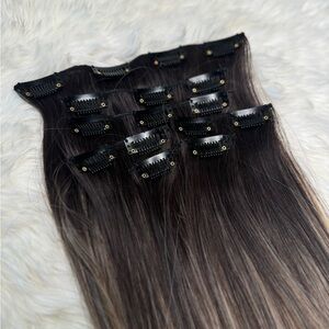 Human hair blend 24 In Dirty Blonde Ombre Straight hair Clip in Extensions