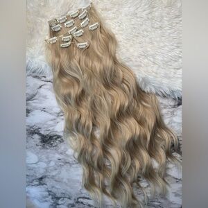 Human hair blend #613 Light blonde Clip in Hair Extensions for Women