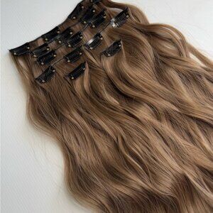 Human hair blend Ash light Brown Clip in 22 in Hair Extensions in Water Wave