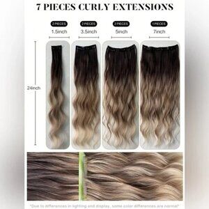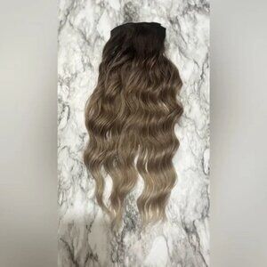 Human hair blend Ombre Ashy Blonde Wavy Clip in hair extensions in 22 Inches