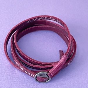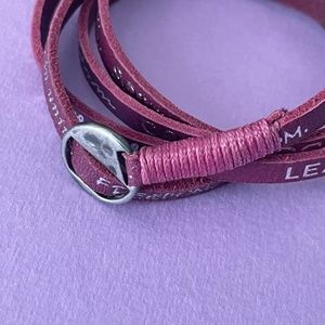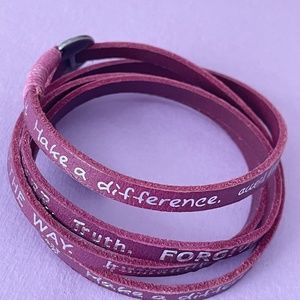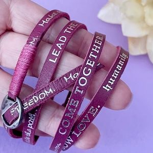 Humanity For All Wrap Bracelet Dark Pink Leather with Silver Lettering