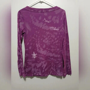 Humanity purple long sleeve tiger tie-dye v-neck shirt.