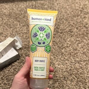 Experience the luxurious feel of Humankind Body Soufflé. This vegan and cruelty-free formula nourishes your skin with natural ingredients. Enjoy the refreshing sensation and vibrant yellow packaging.