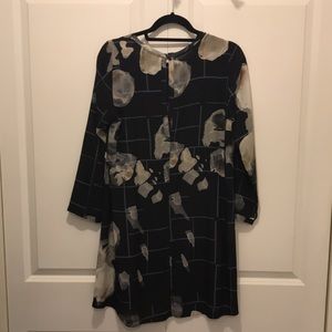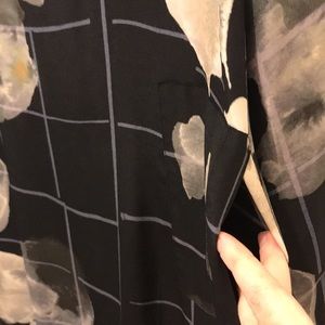 Humanoid Floral & Geometric Grid Lines Silk Dress with long sleeves, in shades of black, light blue and green. Semi-sheer; pair this with a slip underneath. Keyhole at back of neck. Two hidden side pockets. Made in Italy. About this closet: Each item is from my current wardrobe, is well cared for & gently pre-loved! The price listed is the lowest I'm willing to give it up for. For this reason, I don't consider offers. If you love it click Buy Now to make it yours!