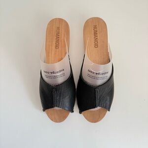 Humanoid Leather Wood Heel Sandals Black Open Toe Clogs EU36 Quiet Luxury
