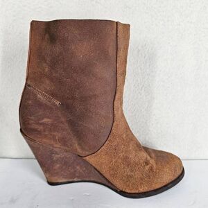 Humanoid Suede Hidden Wedge Booties Tan EU 40