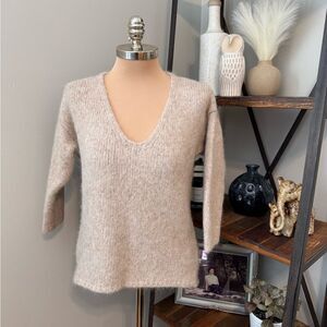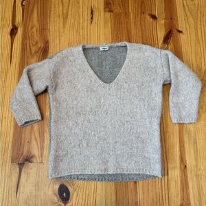 Humanoid V-Neck Sweater Gray/Tan 3/4 Sleeve Alpaca Blend Womens SMALL