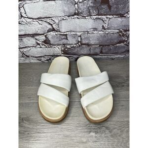 Humanoid White Leather Platform Strap Slides Wedge Sandals Women Sz 39EU/8.5M US