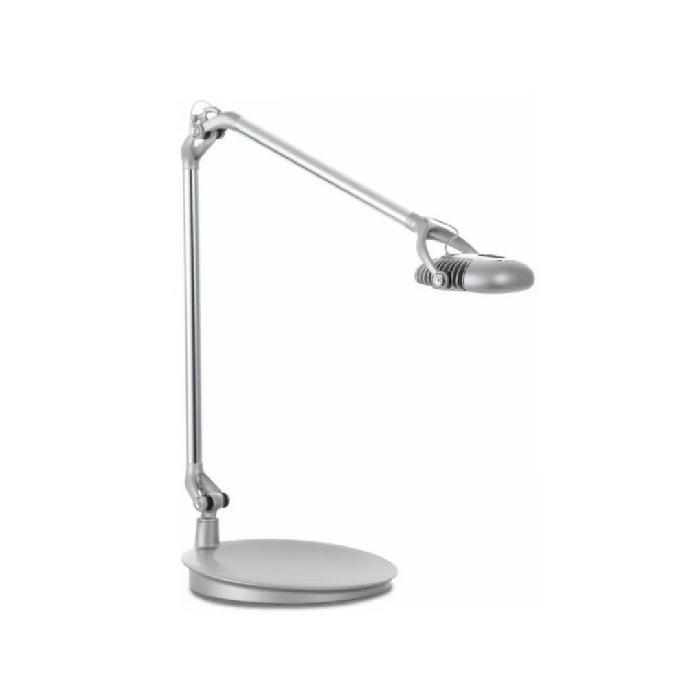 New without box like new Element 790 disc light in silver (semi-matte). Disc style base. Able to turn full 360 degrees. Maximum reach 28". Working height 18". 90% side to side head rotation.
